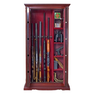 Шкаф оружейный с деревянной отделкой. Предназначен для хранения 5-ти стволов, оборудован запирающимся отделением для патронов, тремя регулируемыми полками.