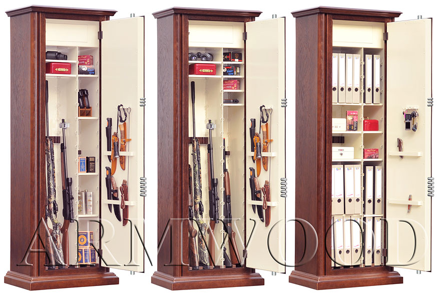 Элитный оружейный сейф с отделкой натуральным деревом. Сейфы полностью удовлетворяют требованиям МВД к хранению оружия. Универсальный сейф, может использоваться как оружейный сейф либо как личный (офисный) сейф.