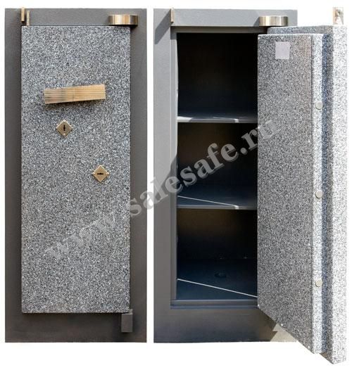Корпус сейфа выполнен из многослойного материала толщиной 80 мм и состоит из двойного стального листа: внешний слой толщиной 5 мм и внутренний 3 мм. Межстеночное простаранство заполнено специальным составом, который гарантирует сохранность содержимого сейфа от механического и термического воздействия. Открыть сейф на 180 градусов позволяют наружные правосторонние петли двери. Ручка на двери выполнена в фирменном дизайне.